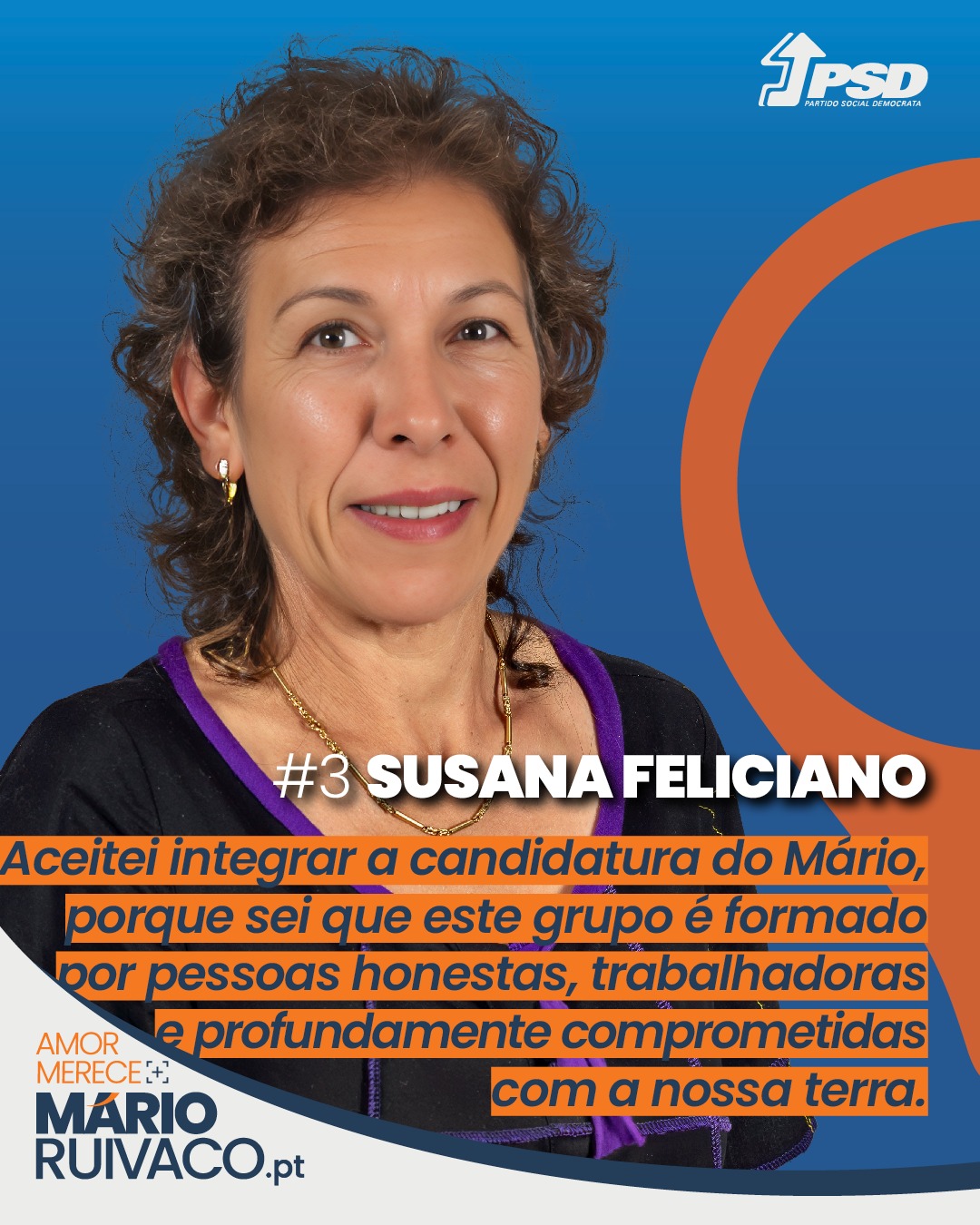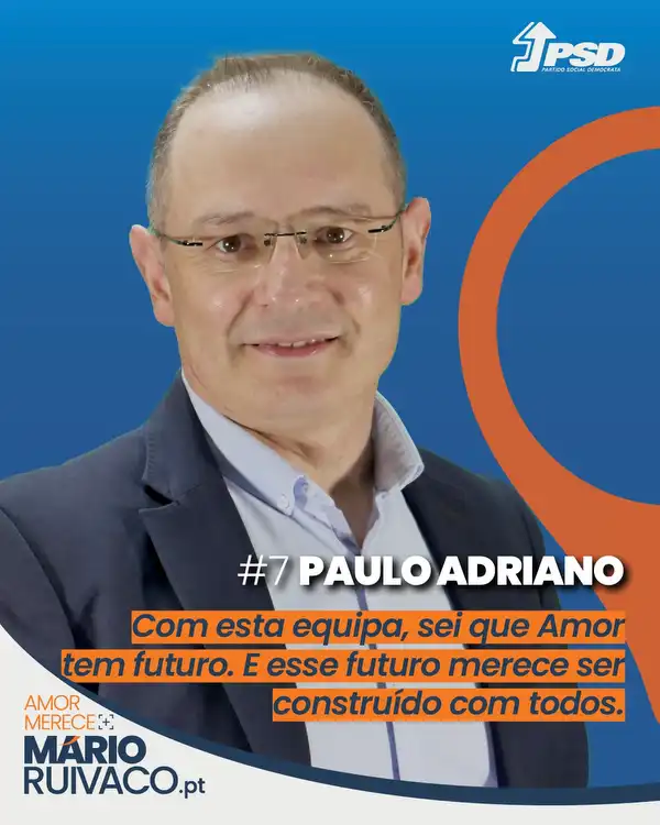 Aceitei integrar a candidatura do Mário Ruivaco à Junta de Freguesia de Amor porque acredito na força do trabalho em equipa e na visão clara que nos une: construir uma freguesia mais próxima, mais justa e com futuro. Confio plenamente na seriedade, na competência e no compromisso de todos os que fazem parte deste projeto. Sei que, juntos, podemos fazer a diferença.