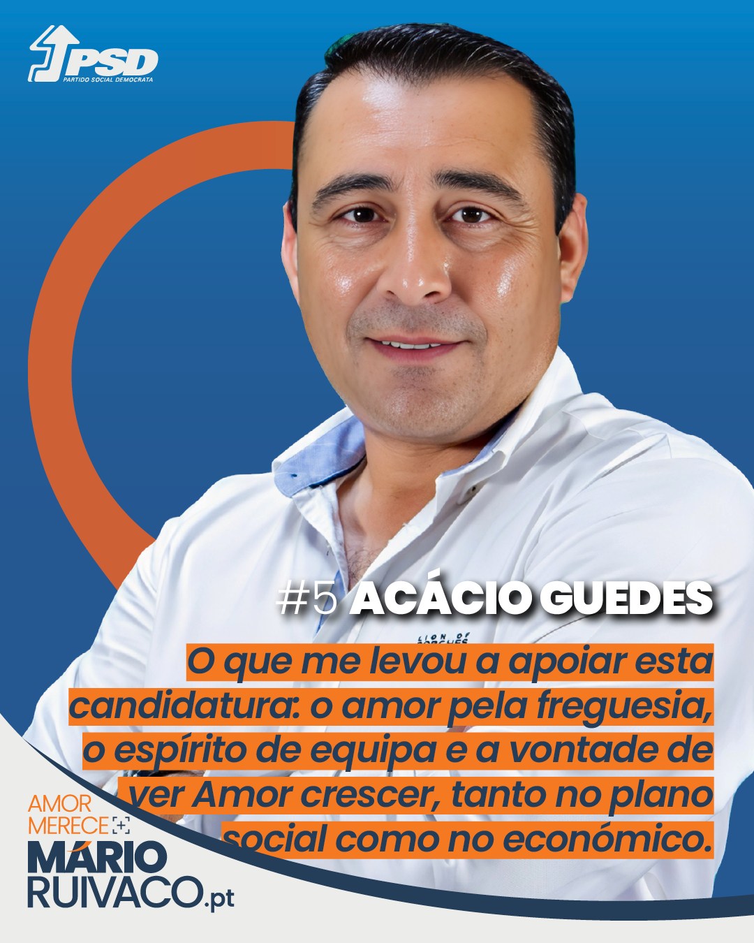 Decidi dar o meu apoio à candidatura do Mário Ruivaco à Junta de Freguesia de Amor porque acredito que Amor Merece Muito Mais. Esta jovem equipa, apoiada pelo PSD, tem a visão, a energia e a determinação necessárias para preparar a freguesia para um desenvolvimento sólido e sustentado a médio e longo prazo.