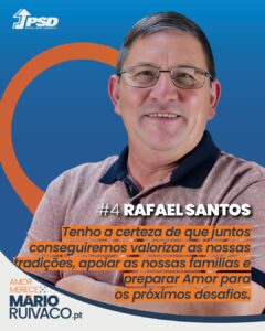 E há ainda um motivo especial: o Mário Ruivaco. Mais do que um amigo, é alguém que se define pela palavra serviço. É uma pessoa que escuta, que valoriza o trabalho em equipa e que tem a humildade de colocar sempre as pessoas em primeiro lugar. É por isso que confio plenamente na sua liderança para estar à frente da nossa freguesia.